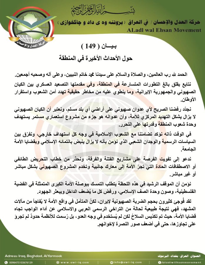 بـيـــان ( 149 ): حول الأحداث الأخيرة في المنطقة